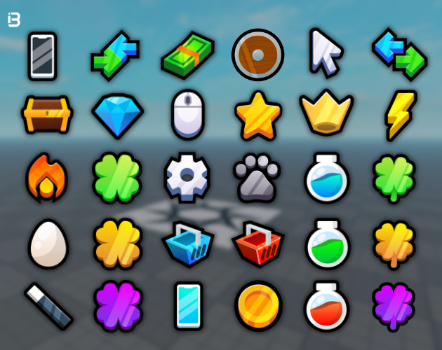 Make your Roblox game stand out with this colorful and high-quality cartoon-style icon pack! Perfect for menus, inventories, shops, badges, and any user interface (UI) elements.